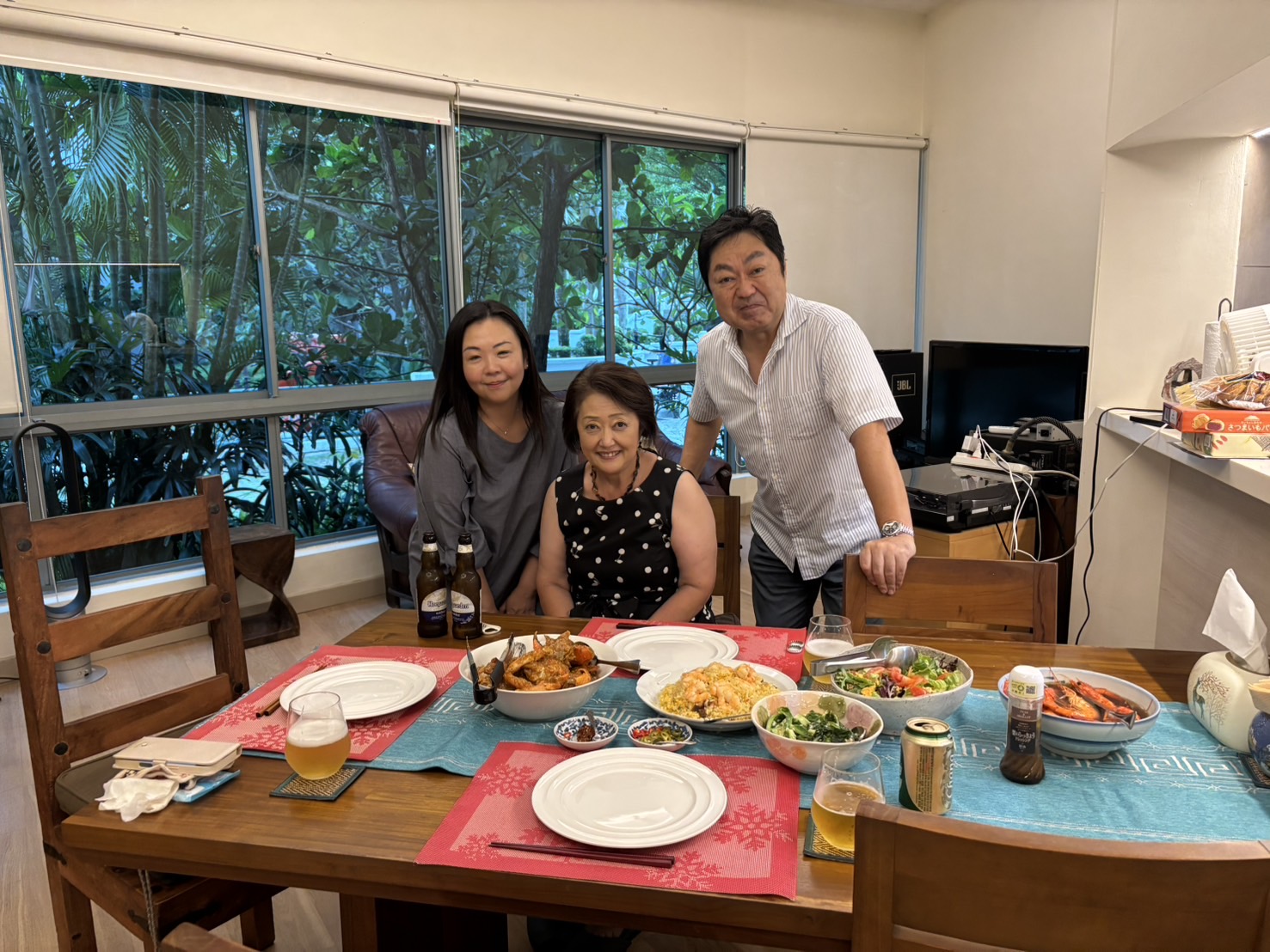 峯村園長のご自宅にて(左から、津波古・小川園長・峯村園長)